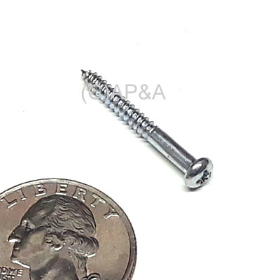 Small #4 diameter Phillips-head screw, 1-inch length, tapered. Coarse thread for sheet metal (SMS) or wood. Commonly used with spacer and washer for inlane guide support on many Bally & Williams games. Sold individually.