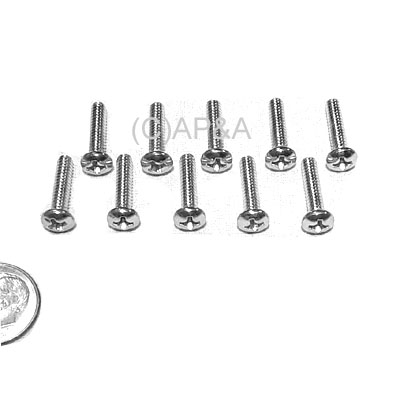 Set of 10 screws. Phillips head screw, #6-32 thread pitch, 5/8-inch length. Steel, zinc plated.