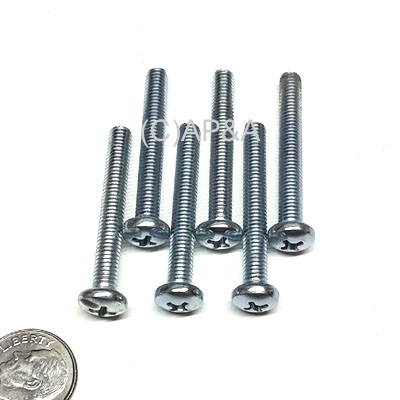Set of 6 screws. #10-32 x 1-1/2-inch Phillips pan head (PPH) screw. Steel, zinc plated.