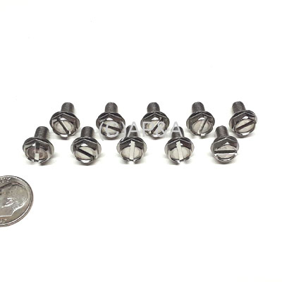 Can replace Sega/Stern swage/serrated head screw #s 237-5961-00, 237-5985-00, and 237-5985-00-NS (non-slotted), when installed with a #10 split washer.