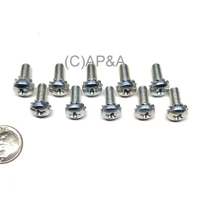 Set of 10 screws. #10 diameter, 32 threads per inch, 1/2 inch length. Phillips pan-head (PPH) machine-thread (MS) screw with built in star washer (SEMS).
