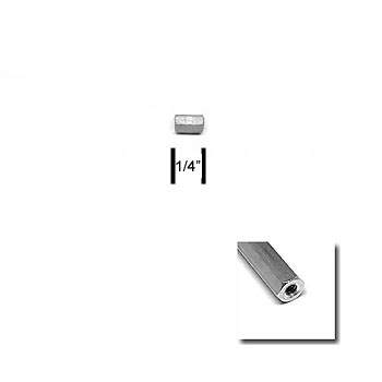 Aluminum hex standoff, 1/4 inch overall length, 1/4 inch width, #6-32 internal (female) threads on either end (F-F) to accept screws or to fit on threaded studs on playfield posts. Replaces Data East / Sega / Stern # 254-5008-00.