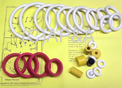This 27-piece kit includes:- All playfield top-side rubber parts that come in contact with the ball (unless otherwise noted - see note below).