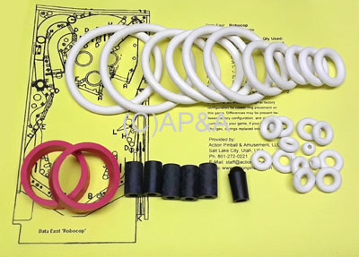 This 32-piece kit includes:- All playfield top-side rubber parts that come in contact with the ball (unless otherwise noted - see note below).