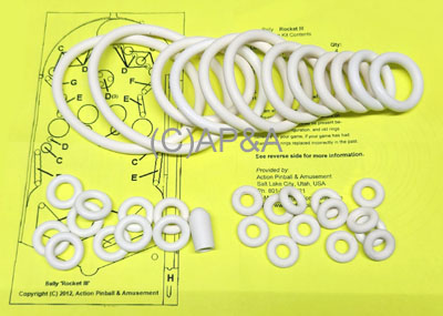 This 35-piece kit includes:- All playfield top-side rubber parts that come in contact with the ball (unless otherwise noted - see note below).