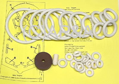 This 30-piece kit includes:- All playfield top-side rubber parts that come in contact with the ball (unless otherwise noted - see note below).