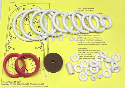 This 32-piece kit includes:- All playfield top-side rubber parts that come in contact with the ball (unless otherwise noted - see note below).