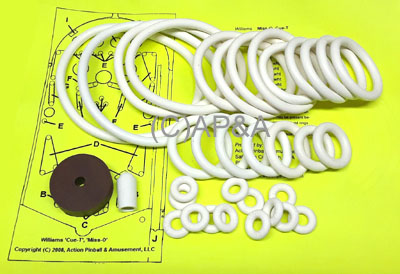 This 35-piece kit includes:- All playfield top-side rubber parts that come in contact with the ball (unless otherwise noted - see note below).