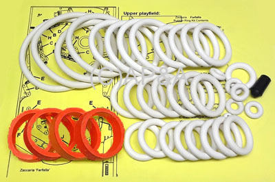 This 39-piece kit includes:- All playfield top-side rubber parts that come in contact with the ball (unless otherwise noted - see note below).