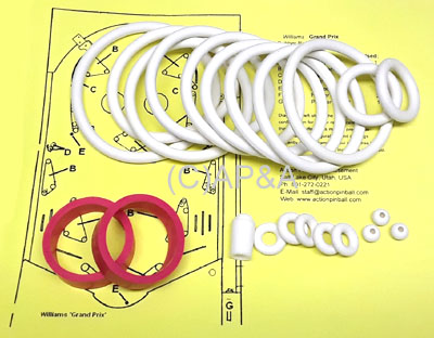 This 22-piece kit includes:- All playfield top-side rubber parts that come in contact with the ball (unless otherwise noted - see note below).
