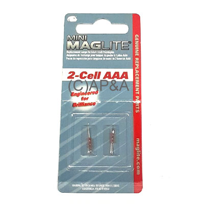 2-pack of standard replacement bulbs for Mini Maglite brand flashlight which uses 2 x AAA batteries. Brand new OEM replacement.