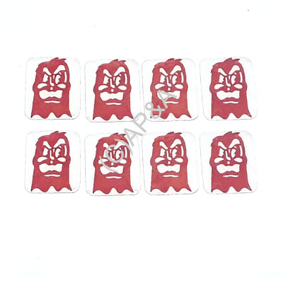 Set of replacement decals for the drop targets on Bally Mr. & Mrs. Pac-Man pinball. 8 decals total. Easy to install- just peel and stick.
