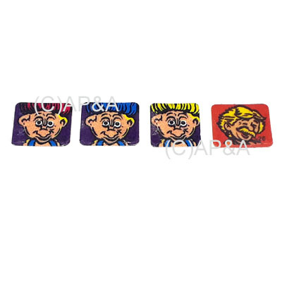 Full set of 4 decals for the drop targets on Stern Roller Coaster Tycoon pinball. Left 3 decals mount on the targets in the 3-bank drop target assembly in the top/center of playfield, and install from left to right as pictured. Rightmost decal installs on the single drop target at the entrance to the upper right orbit lane.