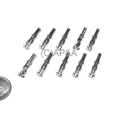 Set of 10 terminals. Round female crimp / solder pin for 0.093 inch connector housings.