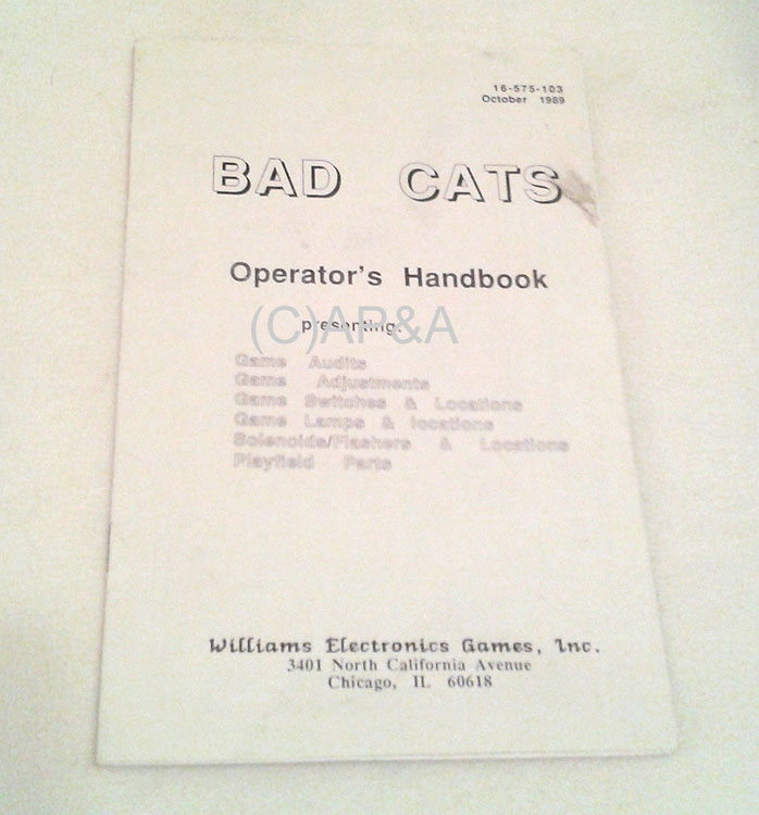 Bad Cats (Williams) Game Manual and Schematics (Reprint)
