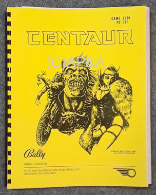 Centaur / Centaur II (Bally) Game Manual and Schematics (Reprint):