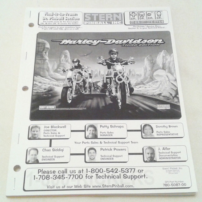 Harley Davidson 3rd Edition (Stern) Game Manual and Schematics (Reprint):
