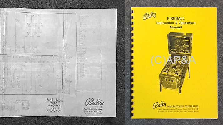 Fireball (Bally 1972) Game Manual and Main Schematic Wiring Diagram Set 2pcs (Reprint) (SEE NOTES):