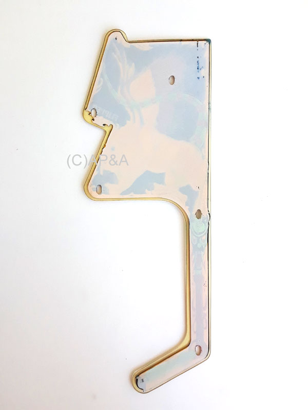 Used playfield plastic for Bally Paragon pinball. This piece mounts in the lower left outlane area of the playfield, behind the small flipper. Factory part # M-1330-161-12. Excellent condition with no cracks or breaks. Some very light rub marks on back from left playfield wood side-rail (see additional image for detail).
