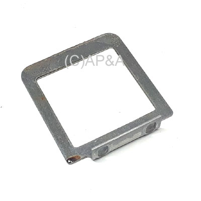 Used metal bracket which holds coin price plate (window) and metal coin slot/plate in place on coin door on older Bally games from approx. 1972-1984. Bally part # P-7496.