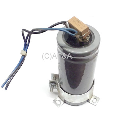 Used large filter capacitor with mounting bracket. Rated 1,000uF, 200 volts. 8.5 ohm 5-watt resistor across leads. Measures approx. 4-1/4 inches tall (not including terminals), 1-3/4 inches diameter.