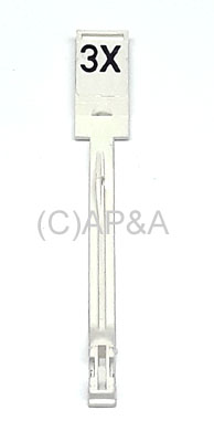 Used white plastic drop target with 3X artwork decal. Used on several Bally electronic solid-state (SS) pinball games in the 1980s.