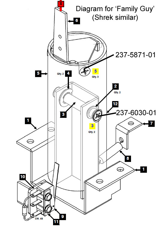 Family Guy / Shrek (Stern) Metal Can Target Post (USED):