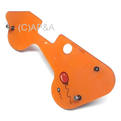 Used artwork plastic that fits over top of right pop bumpers on Williams Hurricane pinball. Williams part # 50012-7-SP. See additional image below for mounting location. Includes 3 black plastic standoffs and 2 mounting screws.