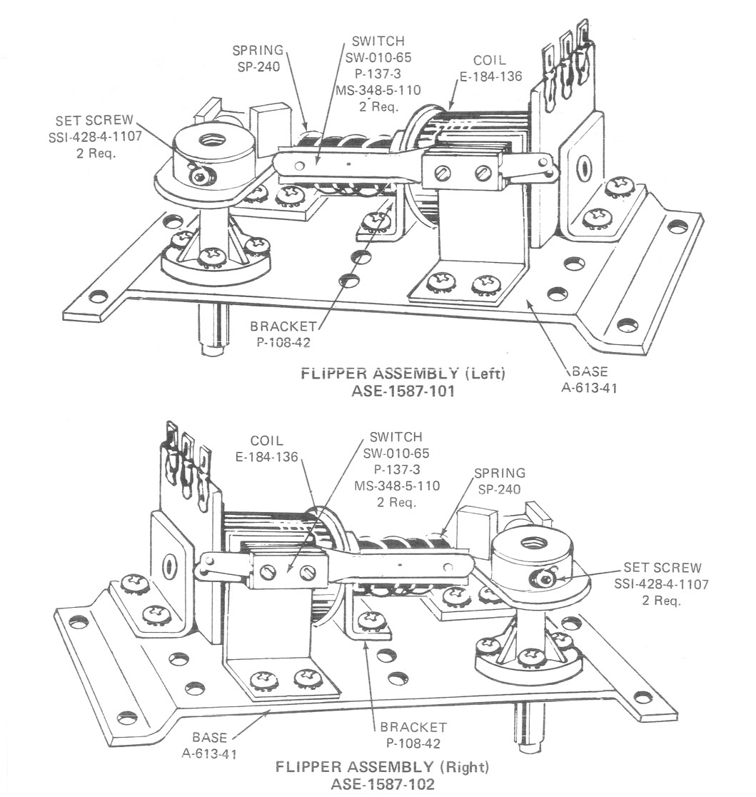 Used left side flipper crank and pawl, as used on Bally late electro-mechanical (EM) and early solid-state (SS) games from May 1975 (Hi-Deal) through Apr. 1980 (Space Invaders). Also used for some non-flipper devices on later Bally/Midway games (replaces Midway part # A370-00016-00XF). Includes set screws for securing flipper bat/shaft. Use with A-3714-3 plunger/link, and our flipper rebuild kit # FLKIT7.