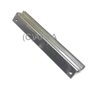 Used lower metal mounting bracket for CPU/MPU board used in early Williams solid-state (SS) pinball games, approx. 1977-1984. Factory part # B-8015. This bracket is slotted and holds the lower edge of the MPU board in place when mounted in the backbox. It also helps support the driver board when it is mounted onto the pins at the bottom of the MPU board.
