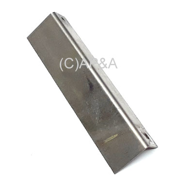 Used metal protector for wood side rail in ball shooter lane. Undetermined manufacturer (possibly late-model Bally/Williams or late-model Stern Pinball). Measures 4-1/2 inches long. Top portion (with screw holes) is 1/2 inch wide.