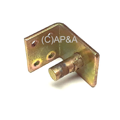 Used metal pivot bracket for playfields in some Data East games. Mounts to underside of playfield with 4 screws (not included) and has pin that fits in bracket mounted to inside wall of main cabinet (not included).
