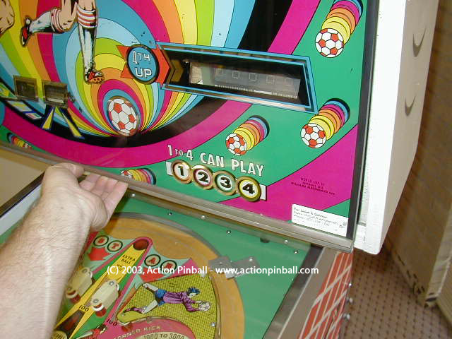 Gently lower the backglass down onto the playfield glass surface. (See 4th image on left). The whole backglass can now be picked up and set carefully aside to gain access into the backbox.