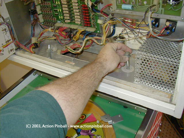 On later Bally & Stern games (1980-up) that DO have a hinge, simply raise the backbox to the upright position.